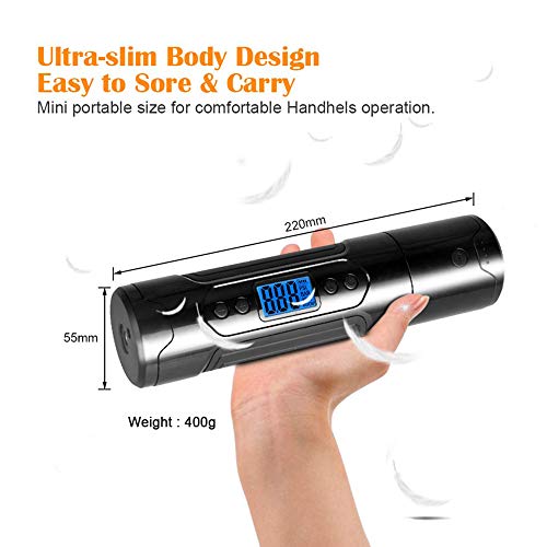 Potente portatile piccola pompa Dimensione: La pompa di aria divano ricaricabile di design classico, il corpo a mano a grandezza naturale, 0.86lb peso, facile da portare in giro, si può facilmente mettere in vostra borsa, zaino, o portarlo a portata di mano, funzione potente, massima potenza 60W, il flusso d'aria in uscita: 400L / M, il potere più forte lo rende in grado di continuare a lavorare 25 minuti con grande ugello senza riposo ..