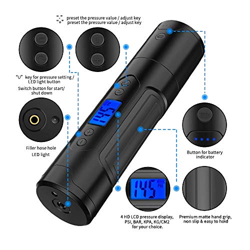 Batteria a lunga durata e forte Potenza: Il nostro mini pompa di aria portatile costruito in batteria al litio 1000mAh, grande uscita di flusso, il potere forte, si può facilmente saltare in aria il singolo materasso d'aria in 80 senconds, letto matrimoniale aria in 2 minuti ..