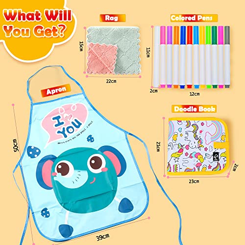 Lavagna cancellabile bambini facile da pulire - il tavolo da disegno riutilizzabile viene fornito con 12 matite colorate lavabili e i bambini possono pulire facilmente con uno straccio dopo aver spruzzato acqua. Non preoccuparti dei pennelli ad acquerello che macchiano i vestiti di tuo figlio, abbiamo dei graziosi grembiuli in modo che i tuoi bambini possano dipingere facilmente!