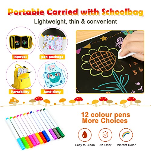 Portatile da Disegno per Bambini, Doodle Disegno Cancellabile Bambini, Riutilizzabile Giocattoli Libro di Pittura per Disegnare, 12 Penne Colorate Cancellabili, Unicorno Regalo per Bambini, 14 Pagine