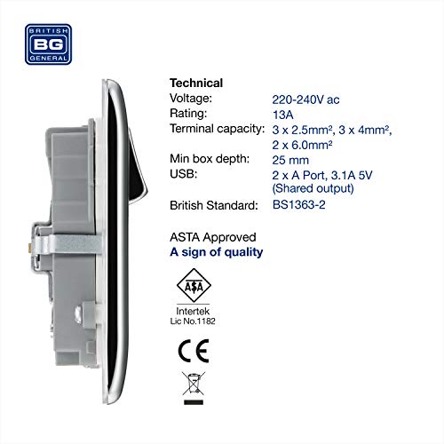 Elegante e sottile cromo lucido doppio interruttore: da BG Electrical Nexus a Luceco, ha angoli leggermente arrotondati e viti di fissaggio di colore abbinato, combinando qualità con eleganza moderna.