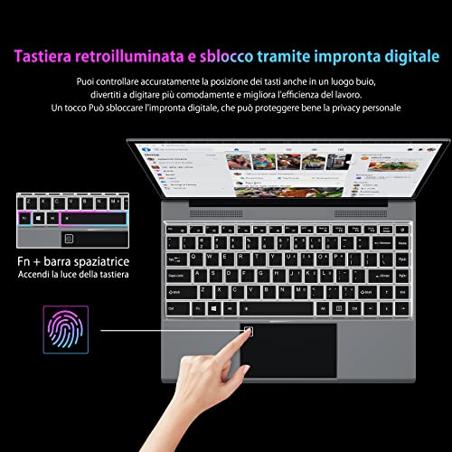 PC Portatile Windows 11, 13,5 pollici Celeron N4120 Quad Core, 8GB RAM+256GB SSD, Notebook computer portatile, pannello 3000x2000 IPS, tastiera retroilluminata, impronte digitali, WPS Office, grigio