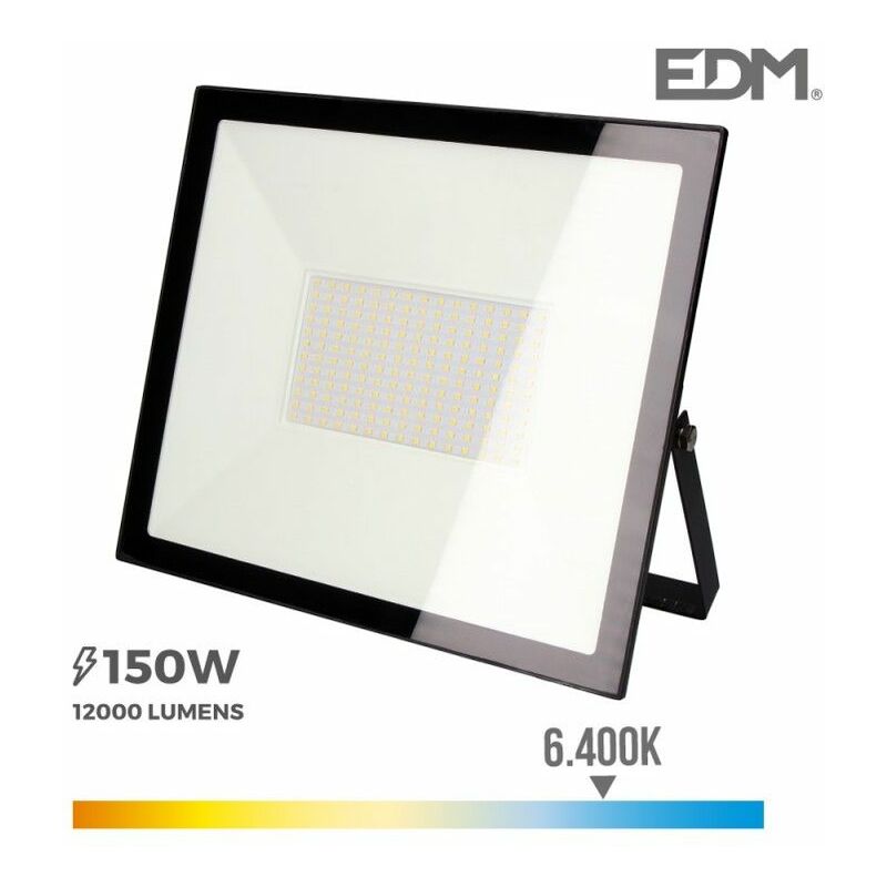 Proiettore a led 150w 6400k black edition edm 350x310x45mm. anello di metallo + vetro. classe di protezione ip65 ii. ce, rohs, 220-240v. 12000lm. angolo di apertura: 120°. 50hz. durata: circa 20.000 ore eec: a