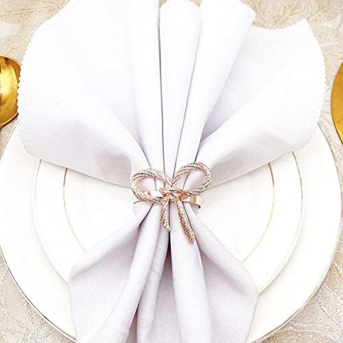 Portatovaglioli Set di bottoni per tovaglioli in metallo con fiocco Papillon in metallo Portatovaglioli Portatovaglioli con diamanti scavati per banchetti per feste di matrimonio (oro rosa) 6 pezzi