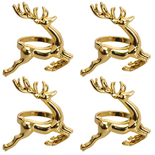 Portatovaglioli,4 Pezzi Portatovaglioli di Renne Natalizie Portatovaglioli in Oro Argento Portatovaglioli Fibbie per Decorazioni per la tavola di Natale,Matrimonio,Cena,Festa,Decorazione Fai-da-Te