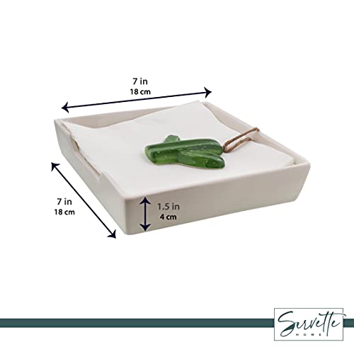 Migliora l'arredamento della tua tavola con questo grande portatovaglioli. Presenta un peso di cactus verde attaccato dalla corda abbinata.