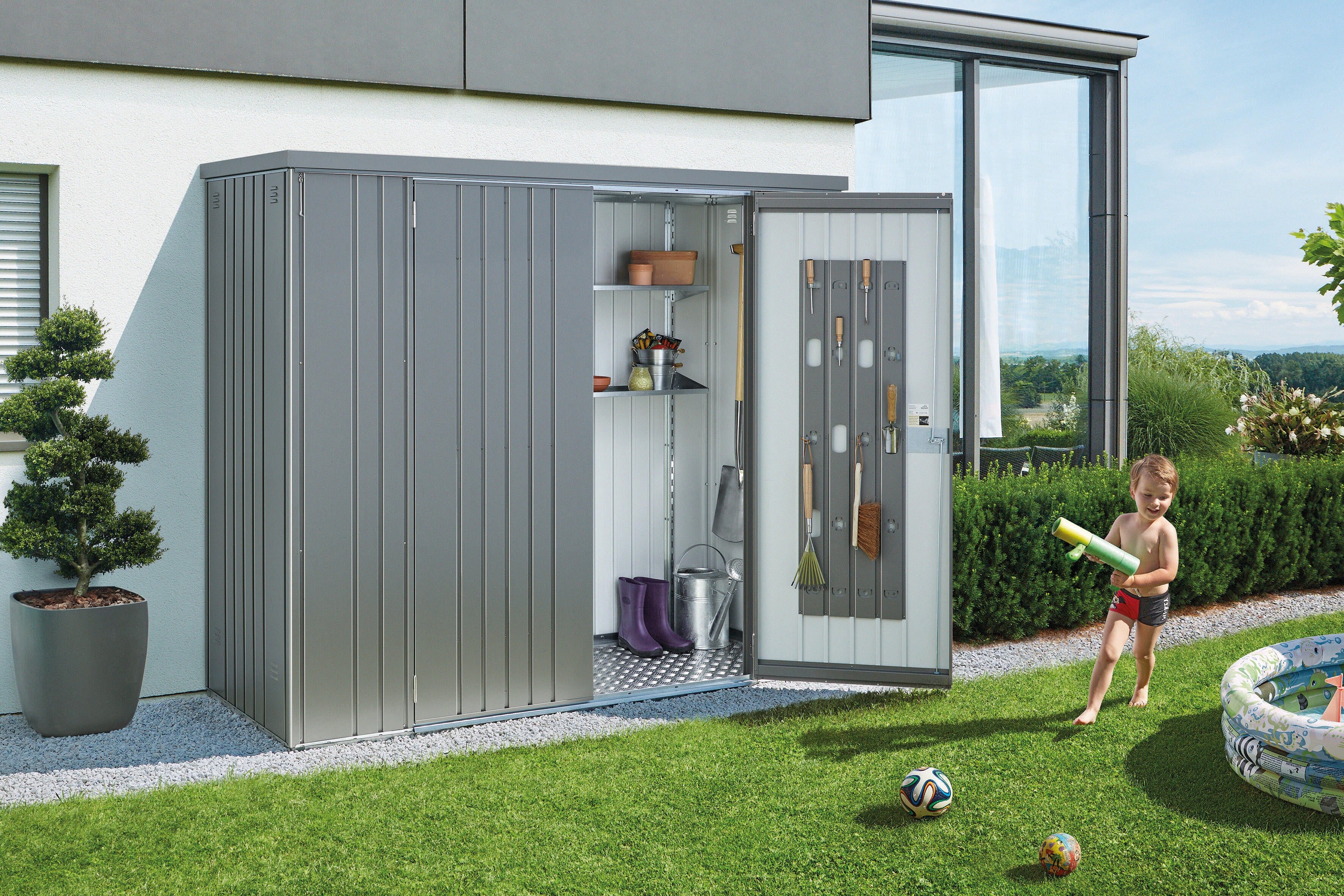 Mobile a 2 ante effetto legno con battente, profilo in gomma, cerniera in metallo, 4 ripiani riposizionabili con blocco anti-ribaltamento. Per esterni. Dotato di 7 piedini regolabili. Top/fondo antiristagno con feritoia. Fissare a muro. Portata max per ripiano 30kg. Lucchettabile. Montaggio: 20min con attrezzi.