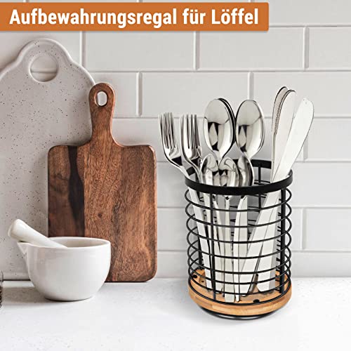 Elegante portautensili: il portaposate in acciaio inox e bambù offre spazio per le vostre pentole e si adatta a tutti gli arredi della cucina per aggiungere un tocco di colore alla vostra cucina.