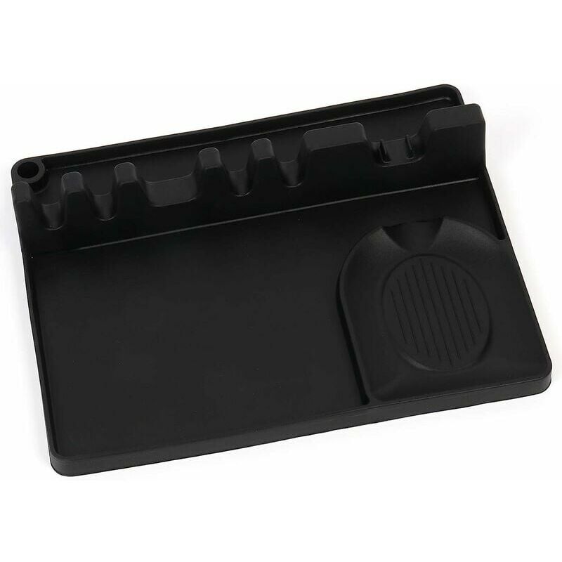Caratteristiche: Questo vassoio per utensili in silicone 6 in 1 è adatto per: utensili aggiuntivi, cucchiai, mestoli, mestoli forati, spatole, pinze, fruste, forchette, ecc. Cucchiai e altri accessori non inclusi< br /> 6 slot ha un bordo rialzato. intorno ai bordi per evitare fuoriuscite.,Dispone di 5 fessure e una grande fessura porta cucchiaio nel vassoio per mantenere in posizione gli utensili da cucina separati. Ideale per mantenere la tua cucina organizzata.Il design sospeso è comodo per la conservazione e l'organizzazione e consente di risparmiare spazio.Il silicone è realizzato per il piano di lavoro della cucina;