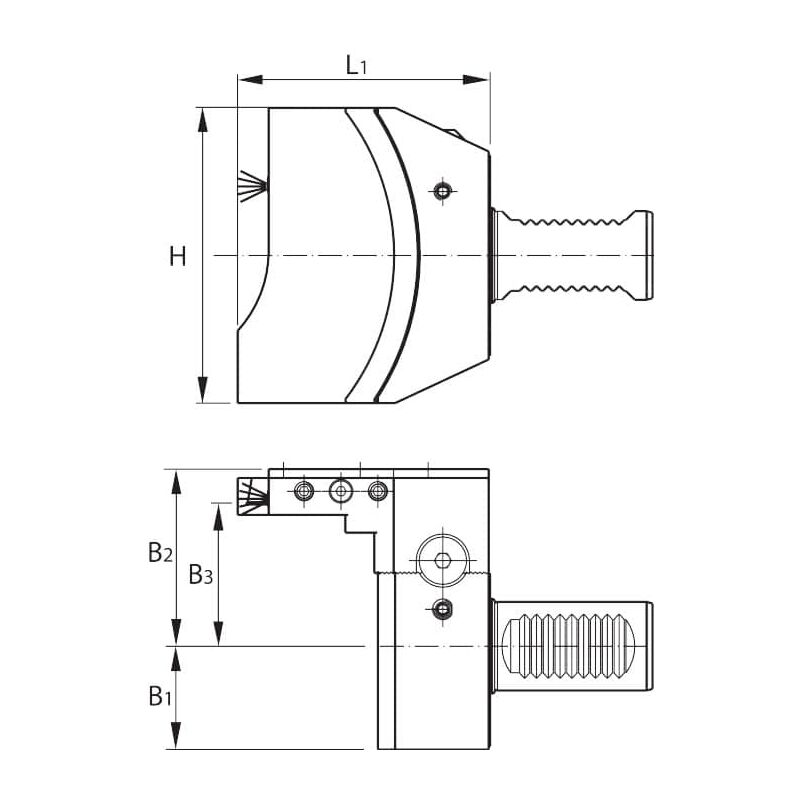 DescrizioneEsecuzione:Per l'uso su torni CNC Gildemeister CTX con revolver esagonale.Con doppia dentatura sul codolo VDI per impiego destro o sinistro.Con spruzzatore sferico per raffreddamento ottimale del tagliente.Serraggio della lama di troncatura mediante listello di fissaggio.Regolazione dell'altezza di ±1 mm.Uso:Per l'impiego delle varie lame di troncatura di diversi produttori.Per:DMG Gildemeister CTX.Nota:Dim. 30-UEK e 40-UEK come esecuzione sopratesta.Dati tecnici Larghezza B1 35 mm Larghezza B2 60 mm Larghezza B3 48 mm L1 88,5 mm Altezza H 100 mm Codice a colori codolo VDI VDI 40 Tipo di prodotto Portautensili per troncatura con attacco VDI Codice articolo 319149 40-UEK EAN / GTIN 2050002040069 Codice del produttore 32.4032WT250RLÜK