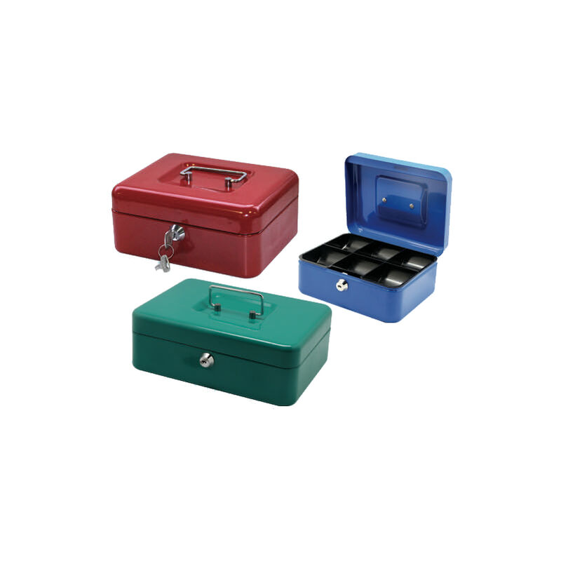 In lamiera pesante verniciata a forno, con maniglia nichelata incassata sul coperchio, cilindro di sicurezza con scrocco e mandata
