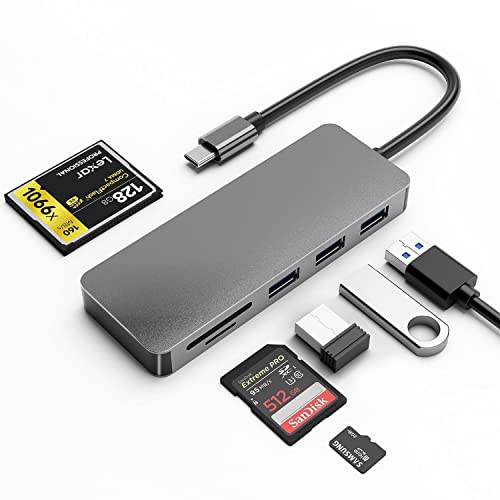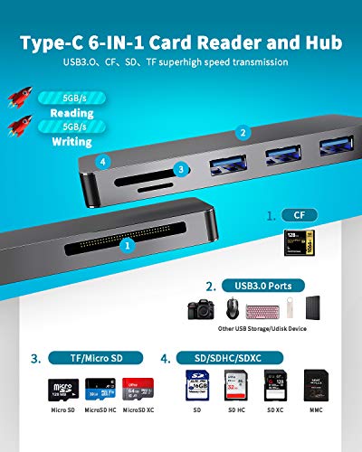 【Hub USB C 6 in 1】Hub C di tipo dati ultrasottile a 6 porte con 3 lettori di schede USB 3.0, CF/TF/SD/MicroSD, perfetto per il tuo macbook Pro Air.