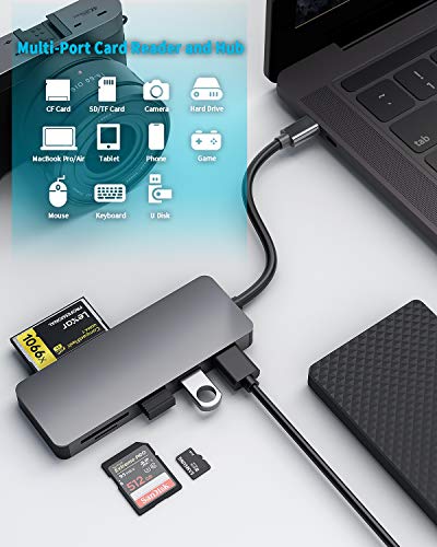 【Lettore di schede CF/SD/TF】 Il nostro hub USB C supporta la lettura di schede CF/SD/TF, che è una buona notizia per gli appassionati di viaggi e fotografia. (Promemoria amichevole: è possibile leggere solo uno slot per schede alla volta).