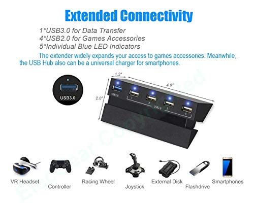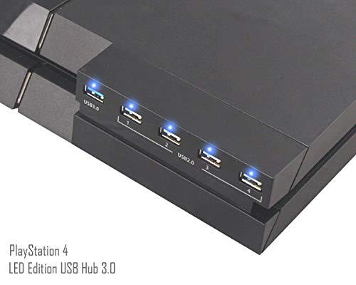 PS4 a 5 porte Hub USB 3.0 - 5 Porte Games USB3.0 estensione Adattatore con 5 Indicatore LED blu Caricabatterie Caricatore per PlayStation 4