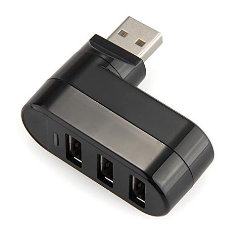 USB Hub 2.0 3 porte di 180 gradi di rotazione mini girano divisore dell'adattatore per il computer portatile nero