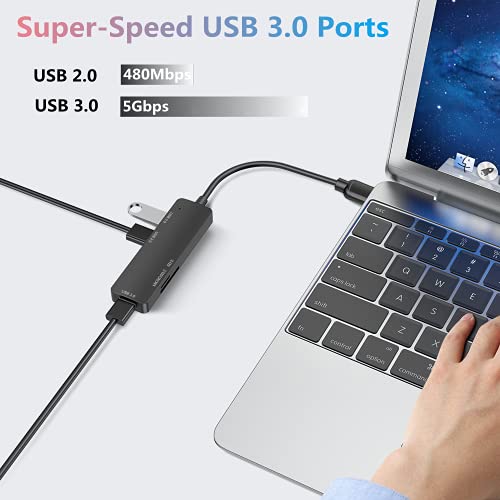 Hub USB 3.0, 5 in 1, con porte USB 3.0 e 2.0, lettore di schede Micro SD e lettore di schede SD, adatto per telefoni cellulari/laptop e altri dispositivi USB
