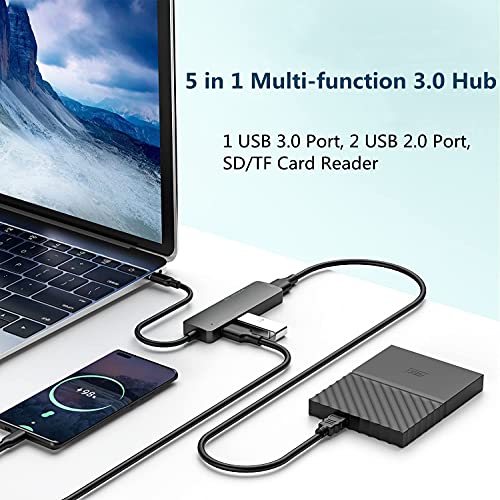 [Multi-interfaccia] Hub USB A 5 in 1 con porte USB 3.0 e 2.0, slot per lettore di schede SD e TF, dispositivi USB C facili da estendere e aggiungere 5 porte per il vostro computer portatile a lunga distanza, non è necessario 5. Porte di distribuzione adatte per computer, PC e uso quotidiano