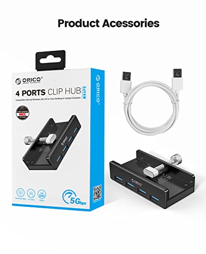 Hub USB 3.0 4 Porte ORICO, Tipo di Clip Hub USB 5 Gbps Mini Alluminio Hub Dati con Cavo 150 cm (A ad A, Bianco) per Monitor, Scrivanie (Senza Collegamento di Alimentazione)-Nero