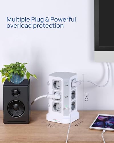 ✅【18 IN 1】KOOSLA integra 12 prese di corrente, 2 USB C e 4 USB A in un'unica Multipresa Verticale, consentendo di collegare fino a 18 dispositivi contemporaneamente anche quando lo spazio è limitato, rendendola la soluzione ideale per casa, ufficio, riunioni, viaggi, ecc. Le porte USB A con circuiti integrati intelligenti supportano una corrente totale di 2,4 A. Rileva automaticamente il dispositivo ed eroga la corrente più rapida, fino a 2,4 A, quando si utilizza una singola porta USB.