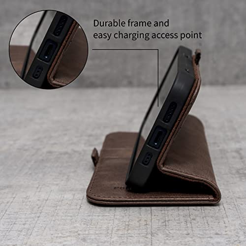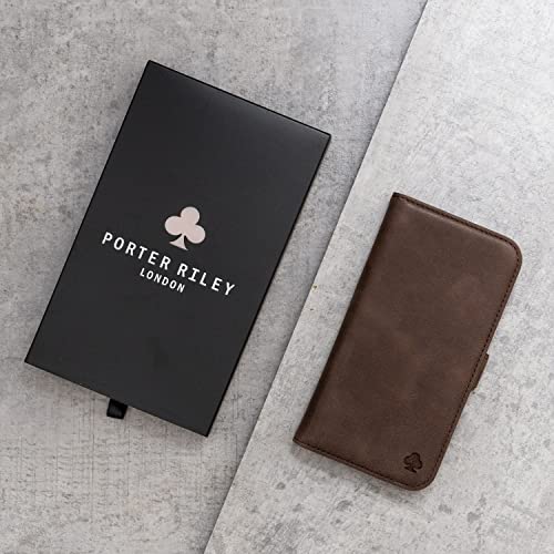 Porter Riley - Custodia in pelle Compatibile con iPhone 15 Pro Max. Custodia a Portafoglio in Pelle Premium con Cavalletto e Slot per Carte (Marrone Cioccolato)