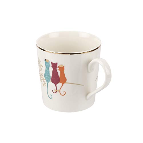 Portmeirion Home & Gifts SMPC78914-XG - Tazza con scritta Feline Friends, colore: Bianco/Oro