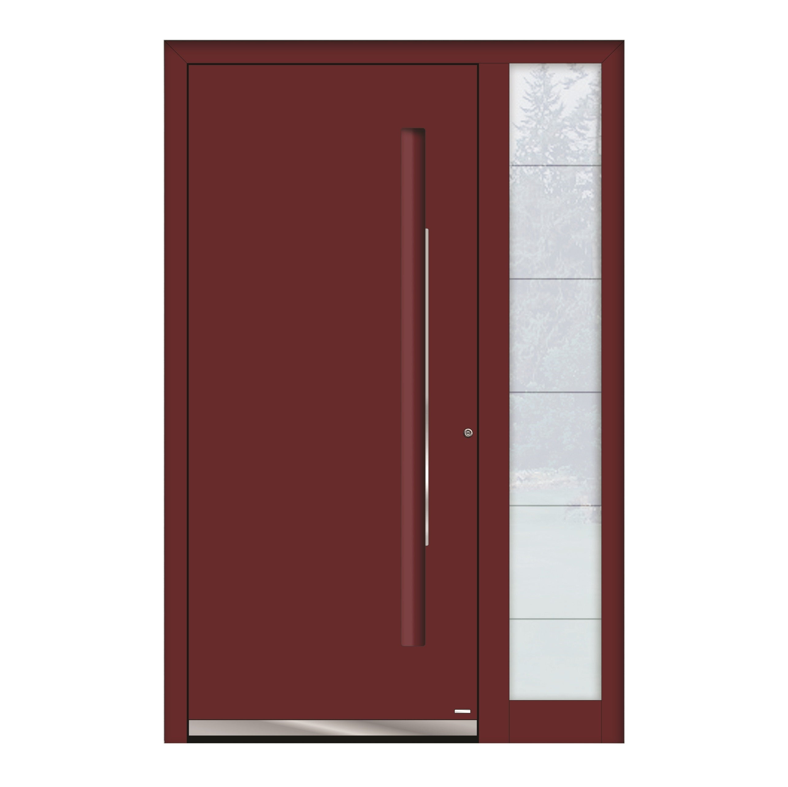 Porta moderna dalle superfici lisce e pulite pensata per gli amanti dell'eleganza. L'innovativo maniglione incassato con raffinato dettaglio in acciaio inossidabile entusiasma anche le persone più esigenti.. Porte di sicurezza solide per case, appartamenti, uffici e altro.. Questo è il settore di competenza in cui le porte Aurum brillano. Il loro spessore è addirittura di 8,7 cm, il che non offre solo una piacevole sensazione di sicurezza ma anche un'elevata protezione alle variazioni di temperatura.. Grazie all'incredibile isolamento termico Aurum si posiziona tra le porte adatte a case a basso consumo energetico. Il livello di sicurezza viene ulteriormente aumentato dalla serratura a tre punti con tre solidi ganci.. La robusta struttura in acciaio non richiede manutenzione per i prossimi decenni. È composta da profili in alluminio a 3 guarnizioni montati in modo impeccabile che creano un solido blocco monolitico.