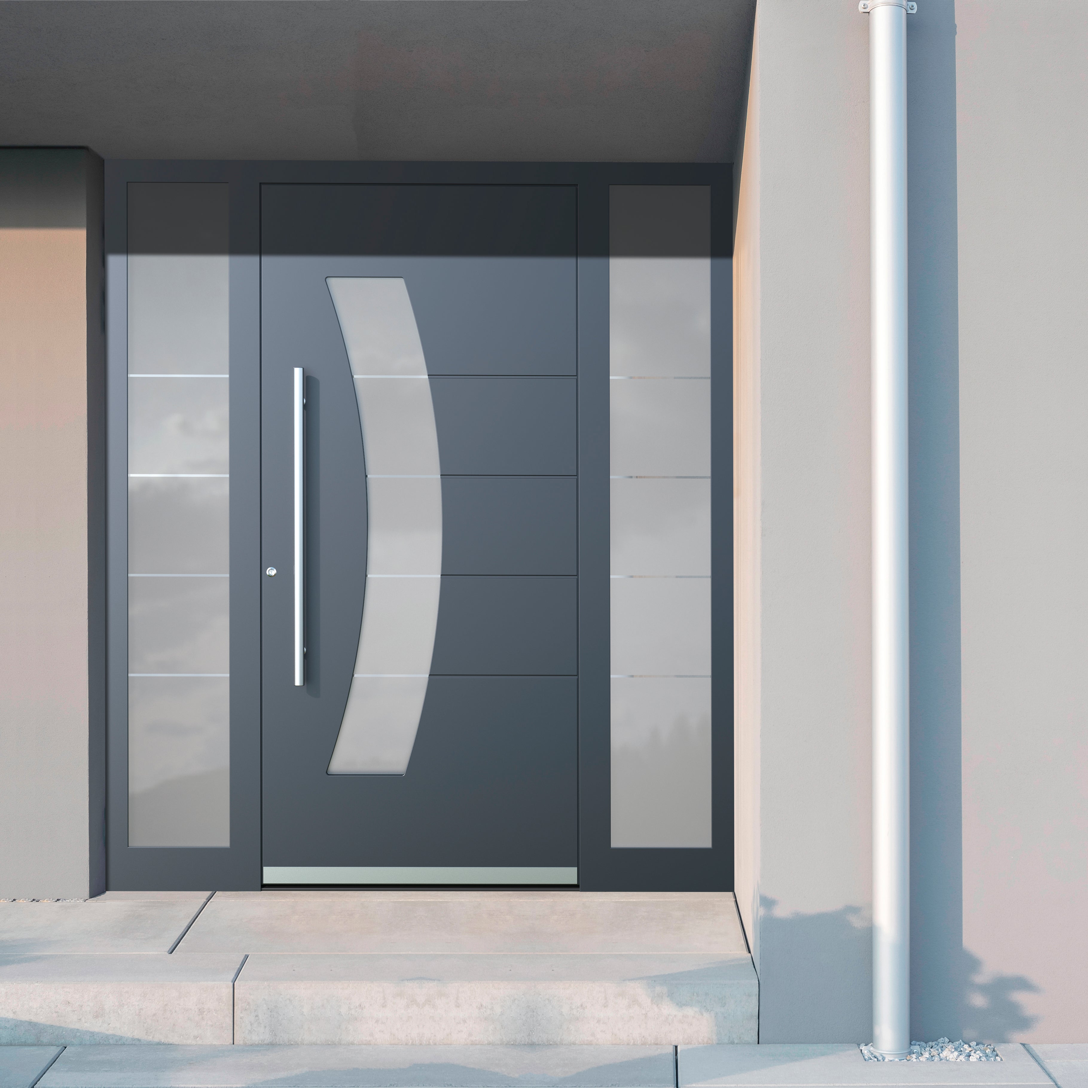 Porta per persone felici e giocose a cui piace accogliere i visitatori con un sorriso. Con la sua forma sorridente ravviva ogni casa e la rende fresca e giovane.. Porte di sicurezza solide per case, appartamenti, uffici e altro.. Questo è il settore di competenza in cui le porte Aurum brillano. Il loro spessore è addirittura di 8,7 cm, il che non offre solo una piacevole sensazione di sicurezza ma anche un'elevata protezione alle variazioni di temperatura.. Grazie all'incredibile isolamento termico Aurum si posiziona tra le porte adatte a case a basso consumo energetico. Il livello di sicurezza viene ulteriormente aumentato dalla serratura a tre punti con tre solidi ganci.. La robusta struttura in acciaio non richiede manutenzione per i prossimi decenni. È composta da profili in alluminio a 3 guarnizioni montati in modo impeccabile che creano un solido blocco monolitico.