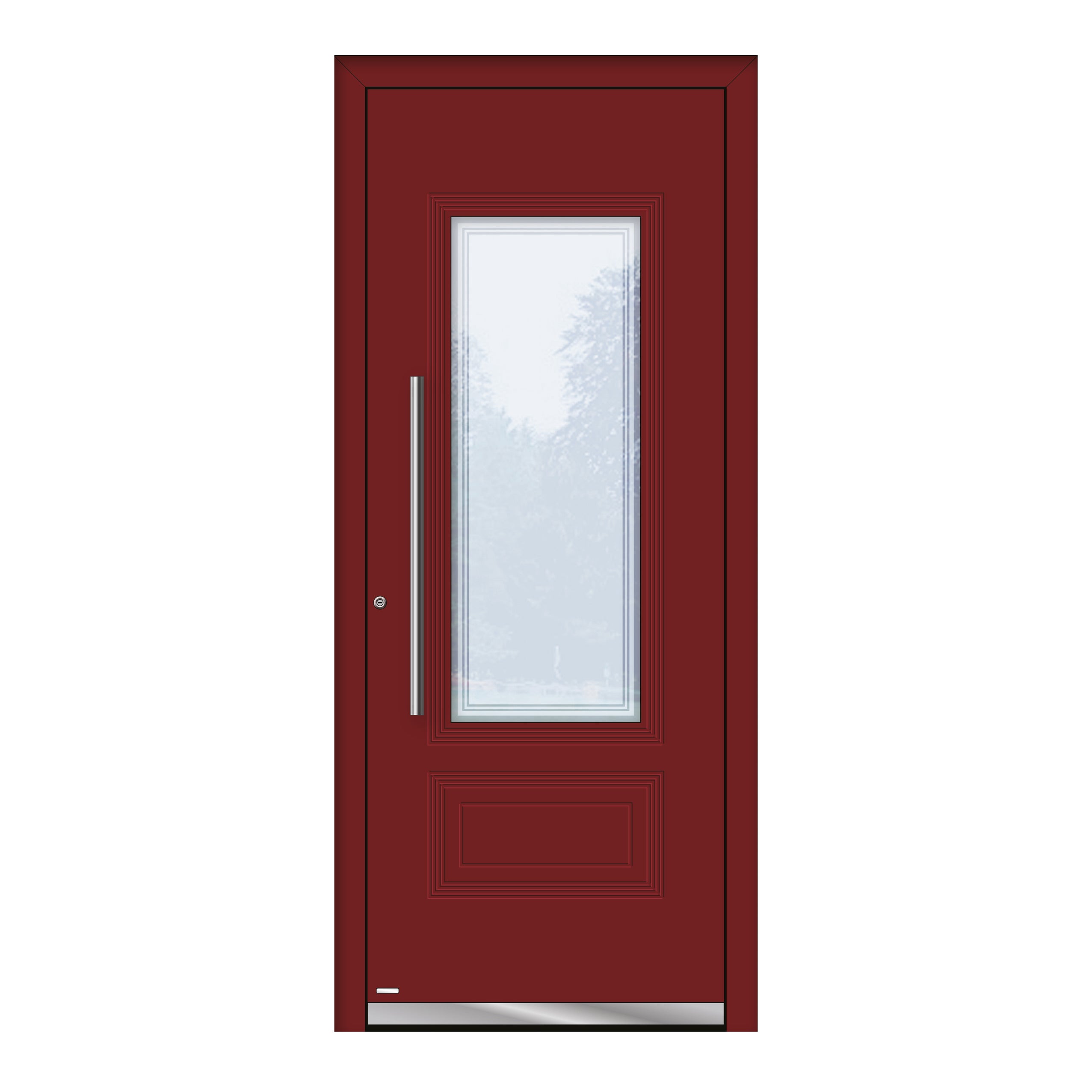 Questa porta rimanda al caldo e nostalgico sapore della tradizione. Le incisioni decorate donano molto a una struttura più datata dalle forme classiche. Solo il maniglione fa capire che si tratta di una porta resistente e tecnologicamente avanzata.. Porte di sicurezza solide per case, appartamenti, uffici e altro.. Questo è il settore di competenza in cui le porte Aurum brillano. Il loro spessore è addirittura di 8,7 cm, il che non offre solo una piacevole sensazione di sicurezza ma anche un'elevata protezione alle variazioni di temperatura.. Grazie all'incredibile isolamento termico Aurum si posiziona tra le porte adatte a case a basso consumo energetico. Il livello di sicurezza viene ulteriormente aumentato dalla serratura a tre punti con tre solidi ganci.. La robusta struttura in acciaio non richiede manutenzione per i prossimi decenni. È composta da profili in alluminio a 3 guarnizioni montati in modo impeccabile che creano un solid
