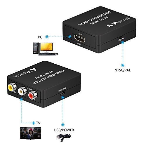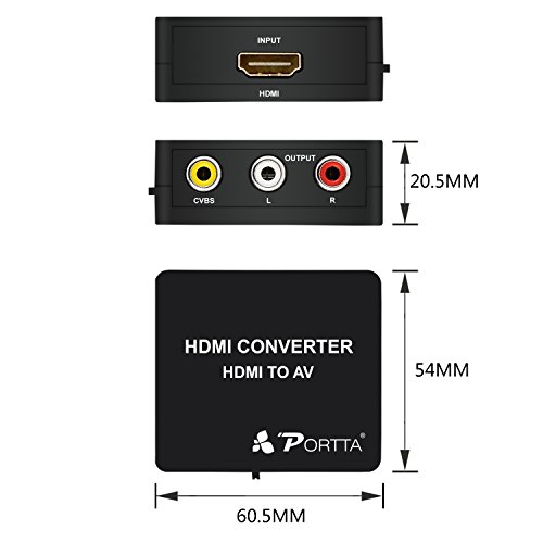 Portta HDMI Converter Convertitore da HDMI a 3RCA Composite AV Mini,1080p, Non per Windows 10 per HDTV Notebook Laptop Desktop PC Projector
