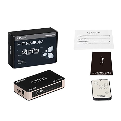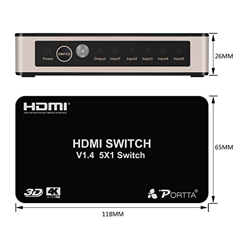 Portta 4K HDMI Switch Switcher 5 Port Commutatore HDMI 5 input a 1 output Interruttore HDMI Premium V1.4 con telecomando IR per HDTV PS3 PS4 Xbox Blu-ray DVD STB PC