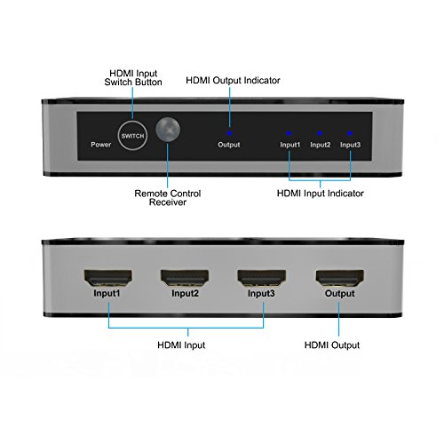 【Commutateur HDMI2.0】Materiali di alto livello in lega di alluminio Switch HDMI a 3 porte Supporta pienamente la specifica HDMI 2.0, supporta la risoluzione HDMI fino a 4K @ 60Hz, Full 3D, 12 bit per canale Deep Color, versione HDCP2.2, 600 MHz / 6.0 Gbps per larghezza di banda del canale, LPCM, DTS, Dolby Digital e Consumer Electronics Control, offrendoti una piacevole sensazione di casa Teatro.