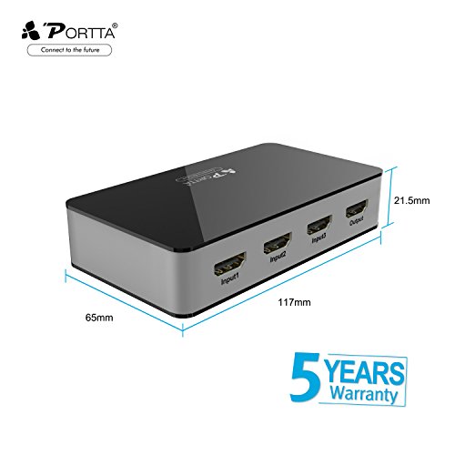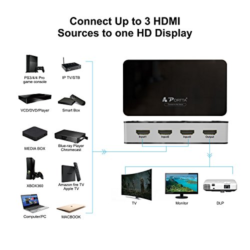 Portta 3x1 Switch HDMI 4K@60Hz YUY 4:4:4 Premium Interruttore HDMI 2.0 Switcher 3 Ingresso 1 Uscita Supporto Completa HDCP HDR 3D per HDTV PS3/PS4/PS4 Pro/Xbox/Blu-ray DVD/STB/PC