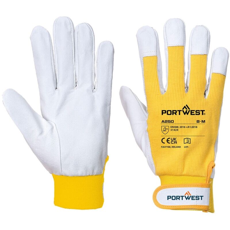 Guanto robusto in pelle di capra con fettuccia a strappo di chiusura, dorso in cotone e dita rinforzate. Adatto all'utilizzo per applicazioni industriali leggere. Guanti da Lavoro in Pelle di Capretto Guanto robusto in pelle di capra con fettuccia a strappo di chiusura, dorso in cotone e dita rinforzate. Adatto all'utilizzo per applicazioni industriali leggere. Caratteristiche Realizzato in pelle di capra durevole di alta qualità Retro in cotone per traspirare Cinturino in fettuccia a strappo per una sicura vestibilità Adatto per applicazioni industriali leggere Il palmo in pelle migliora notevolmente la durata Inserti rinforzati nelle zone di maggior stress per la massima durata Certificato CE Blister che aiuta la presentazione per le vendite al dettaglio Materiali Pelle di capretto, Cotone, Poliestere