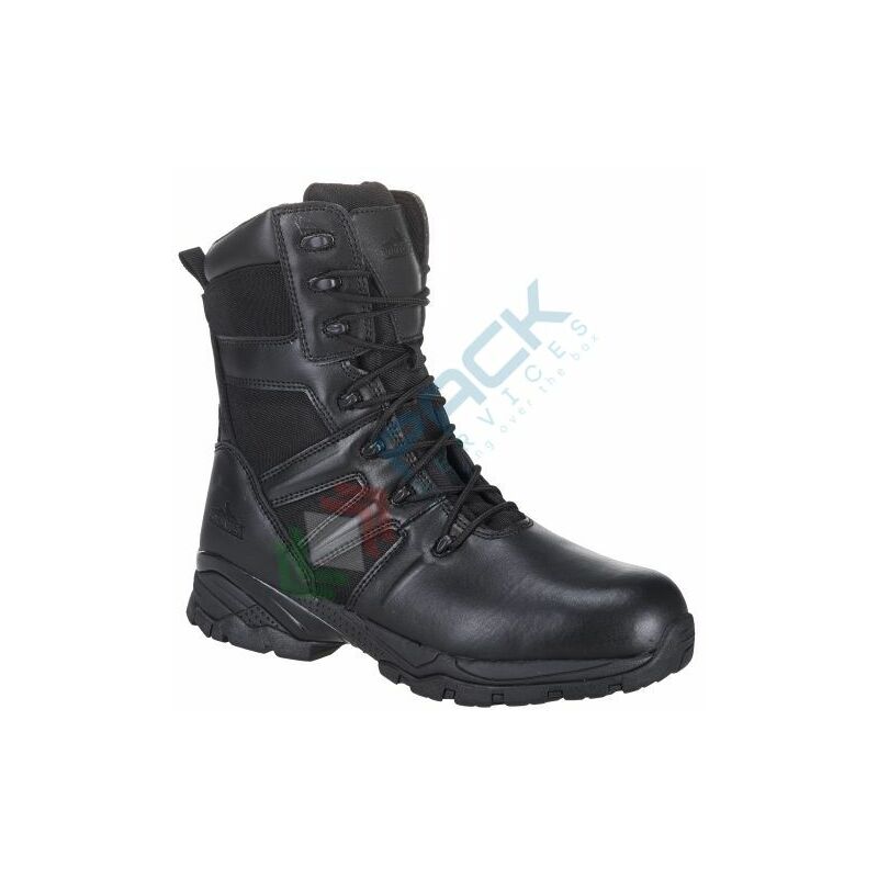 Progettato per il massimo comfort dell'operatore, la suola in EVA/gomma è resistente al calore e altamente durevole. La tomaia impermeabile in combinazione con il rivestimento interno traspirante garantisce il massimo comfort per l'utilizzatore anche quando indossato per lunghi periodi. Adatto per il personale militare e di sicurezza. Suola leggera in EVA a doppia densità e gomma Fodera interna traspirante Colletto imbottito per un maggior comfort Linea superiore inclinata per una migliore vestibilità e flessibilità delle gambe Linguetta anteriore e posteriore per una facile calzata Lamina in acciaio resistente alla perforazione Puntale in acciaio protettivo Suola resistente al calore 300°C Calzatura antistatica Tallone con assorbimento energia Tomaia resistente all'acqua per prevenire la penetrazione dell'acqua SRC - Suola antiscivolo per evitare scivolamenti e inciampi su superfici in ceramica e acciaio Suola resistente ai carburanti e agli oli Suola a doppia densità Ampia