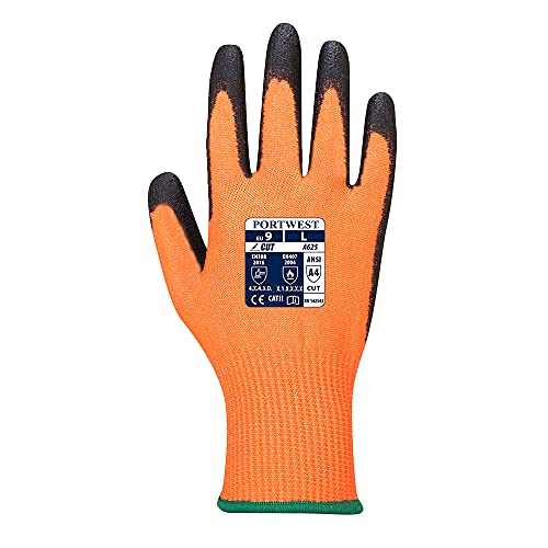 Portwest Vis-Tex5 - Guanti Resistenti al Taglio, Confezione da un Paio, Arancione/Nero, S