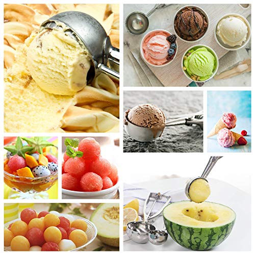 Porzionatori da gelato, Set di 3 Acciaio Inossidabile Cucchiaio di Gelato Include di Piccole Dimensioni (4 cm), Dimensioni Medie (5 cm), Grandi Dimensioni (6 cm) per Melone Frutta