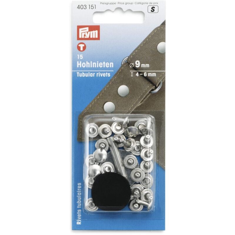 Descrizione I rivetti di Prym sono disponibili in varie dimensioni, rendendoli adatti a diversi spessori del materiale. Le differenze sono nel diametro della testa e nella lunghezza del perno interno. Più alto è il perno, più spesso può essere il materiale da rivettare, come la pelle. Nel pacchetto troverai gli strumenti giusti vicino ai rivetti tubolari, quindi tutto ciò di cui hai bisogno è un martello per lavorare con i rivetti tubolari. I rivetti tubolari sono realizzati in ottone inossidabile di colore argento e producono risultati visivamente puliti per ogni applicazione. Avviso di sicurezza Tenere lontano dalla portata dei bambini.