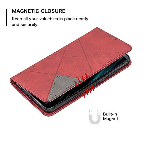 Posanter Cover per Xiaomi Redmi Note 8 Pro, Flip Custodia Portafoglio Caso Libro Pelle PU e Slim TPU Silicone Antiurto, Ultra Sottile con Chiusura Magnetica e Tasca per Carte Flip Wallet Caso (Rosso)