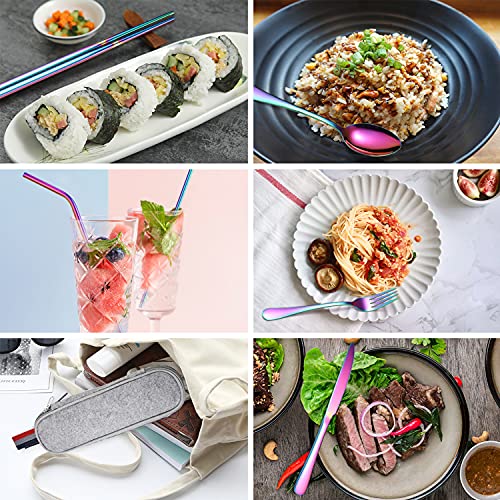 Posate da Campeggio,8 Pezzi Set di Posate,Acciaio Inox da Tavola Dinnerware Con Custodia per Viaggiare Camping Picnic Working Hiking (colore)