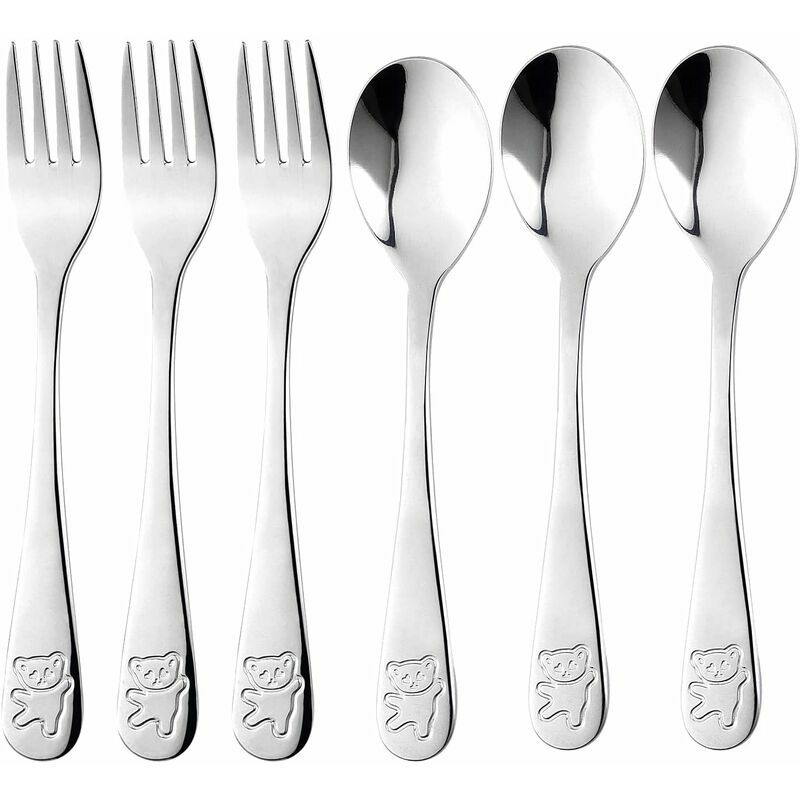 Set di posate per bambini - Riceverai 3 cucchiai per bambini e 3 forchette per bambini, colore argento, la quantità è sufficiente per coprire l'uso quotidiano e la sostituzione dei bambini., 【Materiale premium】 Le stoviglie per bambini sono realizzate in acciaio inossidabile di alta qualità, resistenti e durevoli, lisce superficie e non facile da arrugginire, facile da pulire e lavabile in lavastoviglie., 【Bel design】 La dimensione del cucchiaio è 16,3 x 3,5 cm e la dimensione della forchetta è 16,3 x 2,3 cm. Il manico è progettato ergonomicamente per una presa comoda, la dimensione perfetta lo rende facile da usare anche per i bambini., 【Ampio utilizzo】 L'estremità di ogni set di posate per bambini presenta un simpatico motivo a orso. Il bellissimo design può facilmente attrarre bambini di età diverse, come ragazzi, bambini piccoli, bambini in età prescolare e bambini in età scolare. Può essere utilizzato a casa oa scuola. 【Ottimo come regalo】 Questo set di posate in acciaio