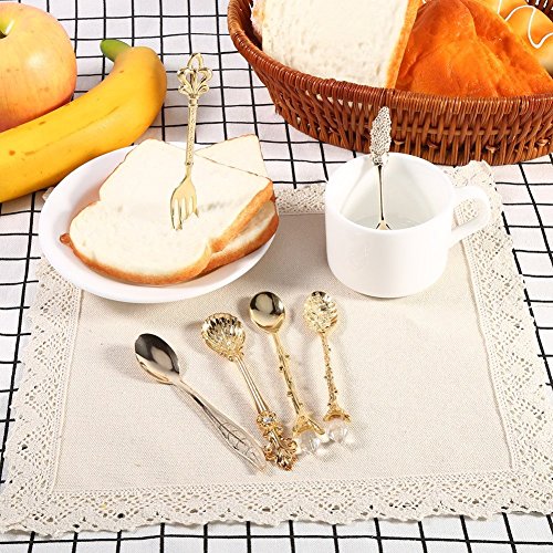 Set di Posate 6pz Cucchiaio E Forchetta Retro Disegno in Lega di Zinco Intagliato caffè Gelato Dolce Frutta, Oro/Argento/Ottone Rosso/Ottone Antico (Colore: Gold)