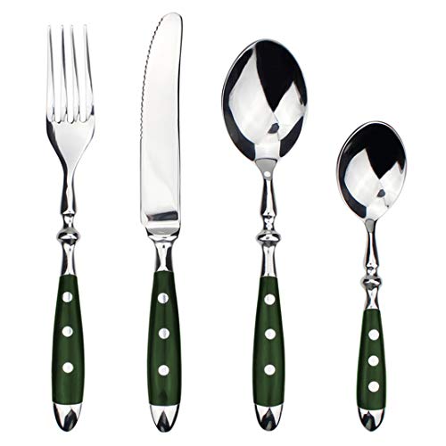 Posate occidentali in acciaio inossidabile stile classico elegante con manico a rivetto Set 4 in 1 Utensili da tavola delicati Stoviglie per la casa 3152 Dark Green