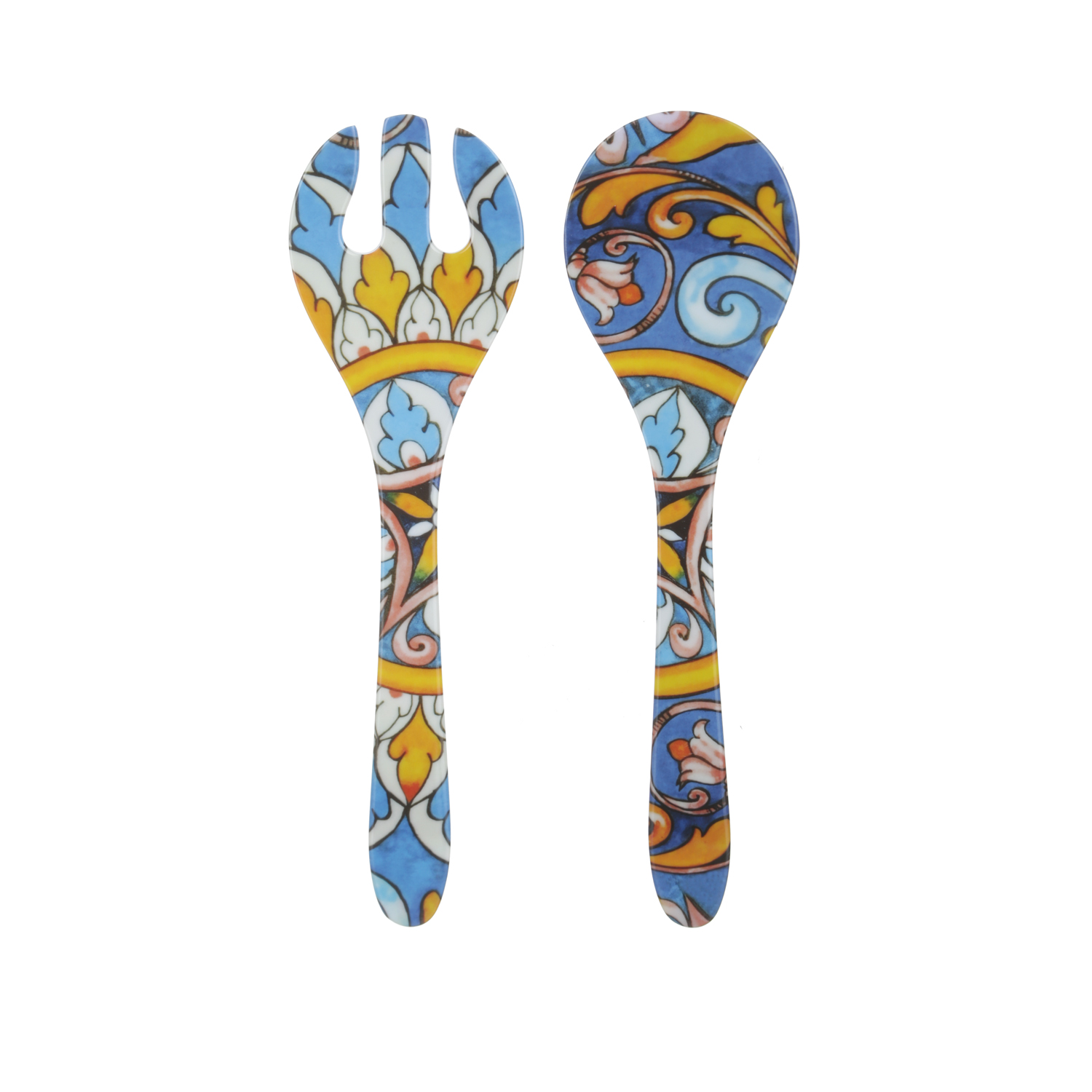 Le posate da servizio Portocervo sono realizzate in melammina di alta qualità, famosa per la sua resistenza e longevità. Queste posate presentano un vivace e gioioso design ispirato ai motivi tradizionali mediterranei, caratterizzato da forme geometriche e floreali nei toni del blu, giallo e arancione. Ideali per portare un tocco di raffinatezza alla tua tavola, le posate da servizio Portocervo sono perfette per l'uso quotidiano e rendono unici i momenti conviviali all'aria aperta. La melammina infatti, rende piatti, stoviglie e posate leggeri, ideali per il cestino da picnic, e resistenti agli urti, quindi totalmente sicuri anche per i bambini. Inoltre, sono lavabili in lavastoviglie per una pulizia pratica e veloce.