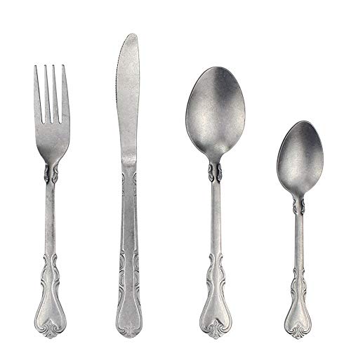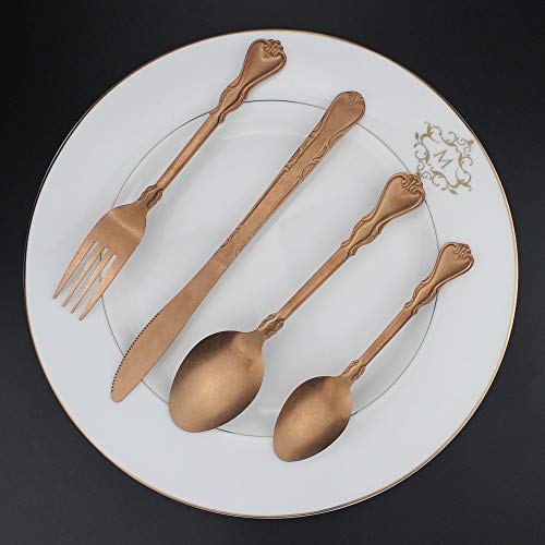Yqs Set di Posate Stile Classico Epoca in Acciaio Inossidabile Occidentale Servizio di stoviglie di Artigianato Antico Opaco di Posate stoviglie for la Famiglia Cucina (Color: Antique Copper)