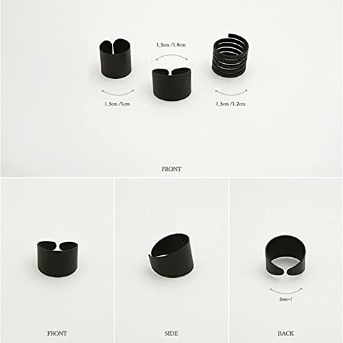 POSDN 3 Pezzi Anello da Donna Set Punk Cool Black Semplice Semplice Band Band Mini Anelli Rock Charm Gioielli per Il Partito Regali Aperto Regolabile