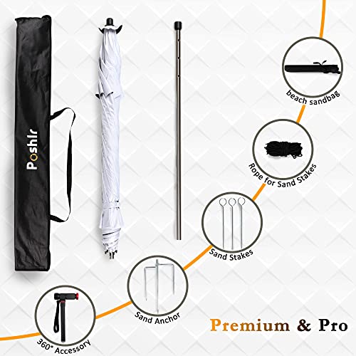 [2 modi di inclinazione a 360 gradi, protezione UV 50+]. L'ombrellone da spiaggia Poshlr offre due modi di inclinazione a 360 gradi e il suo indice di protezione solare UPF è 50+. Ciò significa che puoi regolare l'ombrellone per fornire ombra da qualsiasi angolazione, garantendo che tu sia protetto ovunque sia il sole! Puoi utilizzare il nostro ombrellone da spiaggia nel tuo giardino, in un picnic o ovunque tu abbia bisogno di un po' di ombra.