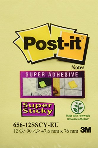 Post-it 27917 Foglietti Super Sticky, 90 Fogli, Confezione da 12 Blocchetti, 47.6 x 76 mm, Giallo Canary