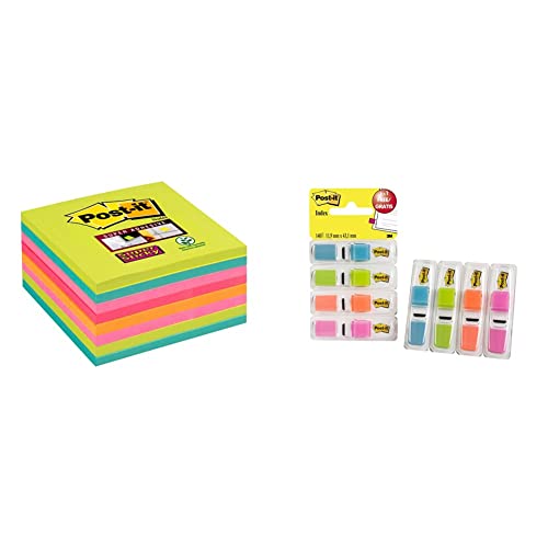 Post-it 70006852159 Sticky Foglietti, Dimensioni 76 x 76 mm, 8 Pezzi & Miniset Segnapagina, 11.9 x 43.2 mm, 3 + 1 x 35, Celeste/Lime/Arancione/Rosa