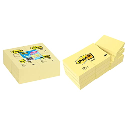 3M Post-it Notes Haftnotizen, 76 x 76 mm, 12+12 Gratis & FT510058488 Blocchetto Adesivo, Confezione da 12 Pezzi, Giallo