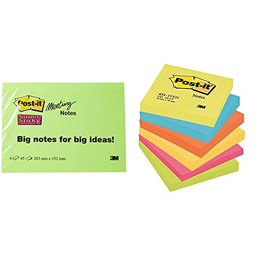 Post-It Super Sticky Meeting Notes - Foglietti Adesivi Rimovibili E Riposizionabili | Dimensioni 203 X 152 Mm & Super Sticky Foglietti, 100 Fogli, Confezione Da 6 Blocchetti